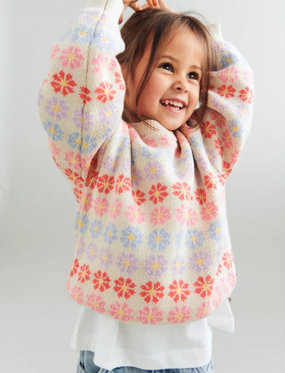 Long-sleeved knit pullover with pattern in soft organic cotton for children. - Regular/loose fit- Dropped shoulders- Rib at the neckline and hems- Unique knit patternKnitwear is a true essential during the cold autumn and winter months, as it is soft and comfortable for your child to wear without any kind of itchiness. Our knits have a classic look with a relaxed fit that makes it easy to style with a pair of trousers or over a dress depending on the weather and occasion. ---- Standard 100 by OEKO-TEX®- 100% Organic Cotton- GOTS certified