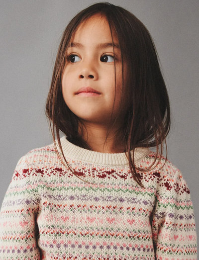 Long-sleeved knit jacquard pullover in soft organic cotton for children. - Regular fit - Rib at the neckline, cuffs and bottom hem- Unique coloured patternWheat's knitwear is a true essential during the everchanging seasons, as it is soft and comfortable for your child to wear without any kind of itchiness. Our knitted pullovers have a classic look with a relaxed fit that make them easy to style with a pair of trouser or over a dress depending on the weather and occasion. It is also perfect as an extra layer underneath a jacket. ---- Standard 100 by OEKO-TEX® - 100% Organic cotton- The product is GOTS certified