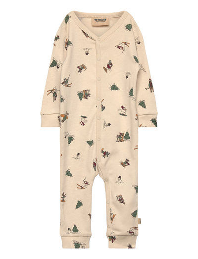 Long-sleeved jumpsuit in soft organic cotton for your baby. - Regular/loose fit- Press buttons down the front and along the inseam- Whreat signature print with Christmas motifsWheat's jumpsuit for babies is both cute and comfortable. The jumpsuit has press buttons at the shoulder or down the front and along the inseam of the legs, which makes it easier for you to dress your baby. The jumpsuit can be worn on its own or as an extra layer underneath everyday clothing. ---- Standard 100 by OEKO-TEX®- 100% Organic cotton- GOTS certified