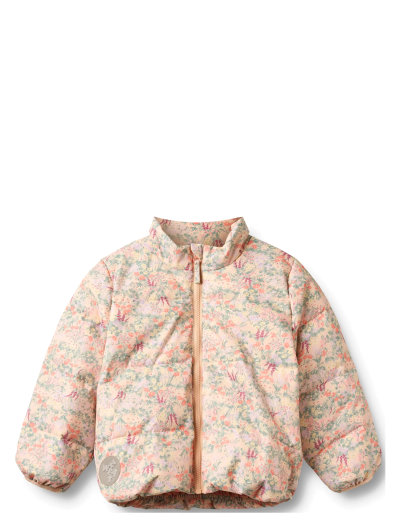 Printed lightweight puffer jacket for chilly spring and summer days for children. - Collar- Visible front zipper with zip garage to protect delicate skin- Hidden pockets in sideseam for little treasures- Hidden elasticated hen at the buttom- Cuffs with elastic edgeband for a snug fit- Reflective logo badge at the back for added visibility- Rubber badge at front- Signature printThis sleek puffer is made for everyday adventures, crafted with technical padding that keeps your child warm without weighing them down. The jacket is water- and wind-resistant, dirt-repellent, and easy to maintain built for play, built to last.Please note: While the jacket offers protection from light showers and breezy days, seams are not taped, so its not fully waterproof.A smart, stylish layer that pairs perfectly with everything from joggers to dresses ideal for unpredictable spring weather.---- Water resistant: 8.000 mm- Breathability: 5.000 g/m2/24 h- Abrasion resistance: 30.000 rub- PFC - free - Flourine-free water and soil repellent finish: BIONIC FINISH ECO---- Standard 100 by OEKO-TEX®- Outer shell: 100% Recycled polyester- 3M technical padding: 100% Recycled polyester- Lining: 100% Recycled polyester