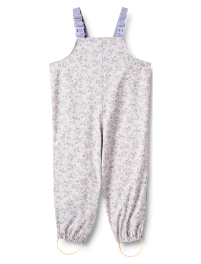 VindtætPraktisk regnoverall med print i vandtæt og slidstærkt materiale til børn. - Justerbare elastiske seler med spænder- Trykknapper i taljen til justering- Elastik i benafslutningerne- Justerbare gummistropper under fødderne- Reflekser- Wheat signaturprintWheats praktiske regntøj er en uundværlig del af dit barns garderobe. Det er lavet i et superblødt og let materiale, som gør det behageligt for dit barn at have på og bevæge sig i. Det er vandtæt og smudsafvisende og er derfor nemt at rengøre med en våd klud efter en mudret eftermiddag på legepladsen. Regnbukserne har elastiske seler og trykknapper i taljen for at sikre en god pasform samt gummistropper under fødderne. ---- Vandtæt: 8.000 mm- Svejsede sømme- Vandbaseret PU- Flourinfri vand- og smudsafvisende finish - BIONIC FINISH ECO (Bio finish) - PFC-fri - GRS-certificeret---- Standard 100 by OEKO-TEX®- 55% Post consumer polyester, 45% Vandbaseret polyurethan