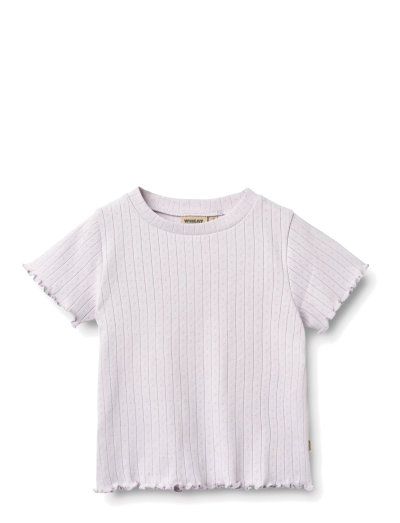 Kortærmet rib-T-shirt i blød økologisk pointelle til børn. - Almindelig/løs pasform - Overlockede kanter ved ærmerne og forneden - Ribbet pointelle-mønsterWheats T-shirts er en uundværlig del af dit barns garderobe, da de er bløde og behagelige for dit barn at have på. De kan nemt styles med et par bukser eller en nederdel, eller med en strik ovenpå, alt efter vejr og lejlighed. Den er også perfekt som et ekstra lag under en kjole eller en overall på koldere dage. ---- Standard 100 by OEKO-TEX®- 100 % økologisk bomuld- Produktet er GOTS-certificeret