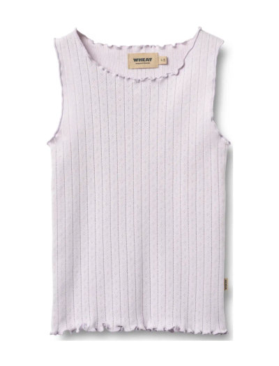 This sleeveless top is crafted from soft organic pointelle cotton, making it a perfect staple for warmer days. - Fitted and stretchable- Ribbed structure- All over pointelle lace patternDesigned with a fitted and stretchable feel, it ensures comfort while allowing freedom of movement. The delicate all-over pointelle lace pattern adds a charming touch, while the ribbed structure provides a snug yet breathable fit. Ideal for layering or wearing on its own, this top is a timeless addition to your childs wardrobe for spring and summer.---- Standard 100 by OEKO-TEX®- 100% Organic cotton- GOTS certified