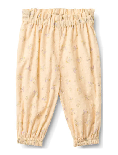 Cute trousers with print in soft woven organic cotton for babies.- Loose puffy fit- Adjustable elastic at the waist- Elastics at the leg hems- Lots of gatherings at the elastics- Ruffle look at the waist and bottom hems- Jacquard woven material with tiny dotsCute trousers with print in soft woven organic cotton for babies.- Loose fit- Side pockets- Adjustable elastic at the waist- Smock elastic detail at the leg hems- Hand drawn signature printThese lightweight woven trousers are a versatile and elegant addition to your babys summer wardrobe. Designed in a soft and breathable fabric, they offer a comfortable fit with a refined silhouette suitable for both everyday wear and special occasions. ---- Standard 100 by OEKO-TEX®- 100% Organic cotton- The product is GOTS certified