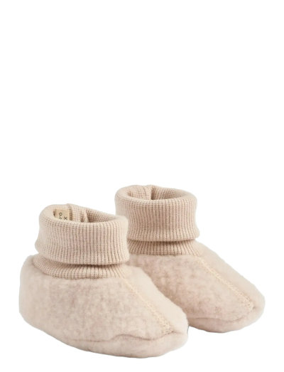WheatLovely booties in soft felted merino wool for your baby. - Soft rib at the ankles Wheats wool wear is specially designed to keep your child warm in the cold weather, while still keeping them from overheating, as wool has the unique quality that it helps regulate body temperature. The wool styles are great for layering and soft on bare skin.Wheats booties are an essential for your baby in the cold autumn and winter months, when you are going for a walk, or they are sleeping in the stroller. They are both cute and practical with soft rib around the ankles that keeps the cold out. They are available in beautiful colours and sweet hand drawn prints, which are made by Wheats in-house design team. Composition- Standard 100 by OEKO-TEX®- 100% Merino wool