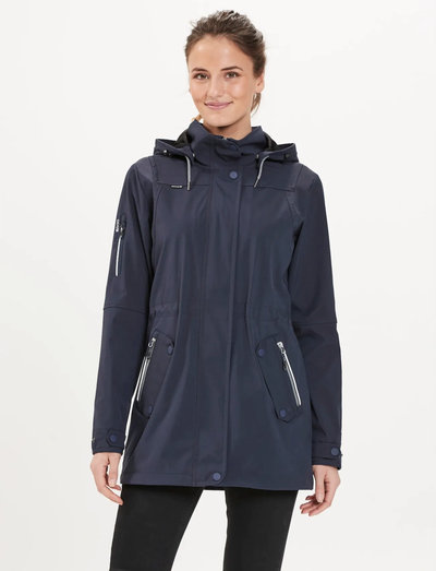 OutdoorDenne lange softshelljakke i parkastil er ideel til overgangsperioder og regnvejrsdage, og har et sporty skandinavisk design. Dens 3-lags system med en TUP-membran sikrer åndbarhed, temperaturregulering og beskyttelse mod vand og vind. Med en vandøjle på 8.000 mm holdes vådt vejr ude. En høj, tætsluttende stand-up krave, justerbar hætte med skygge og et langt snit giver øget beskyttelse mod elementerne. Justerbare ærmer med velcro, to sidelommer med lynlås og en YKK-lynlås i høj kvalitet fuldender denne alsidige outdoor-parka.