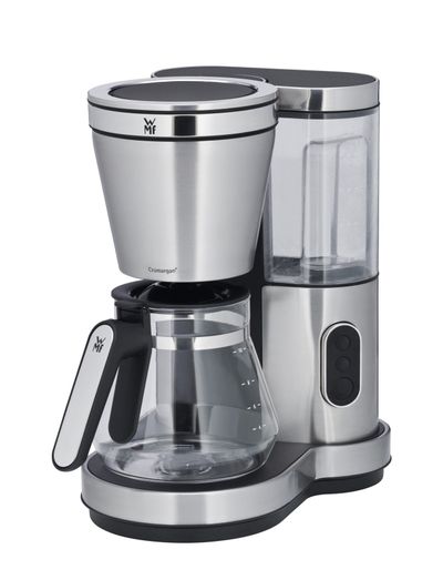 Med sit elegante design i Cromargan® rustfri stål og med Aroma Perfection, som sikrer, at hver enkelt kop kaffe får den helt perfekte aroma, er WMF Lono kaffemaskinen lige noget for dig, der elsker smart design og god kaffe. Kaffemaskinen har en aftagelige vandtank af BPA-fri tritan med vandstandsviser der sikrer en korrekt dosering. Glaskanden kan rumme op til 10 kopper á 125 ml. Takket være det smarte drejefilter kan du hurtigt og nemt fylde kaffen på - uden at spilde. Du kan hurtigt og nemt tænde for kaffemaskinen ved hjælp af det meget brugervenlige betjeningsfelt, så du med det samme kan opnå den perfekte kaffenydelse. Hvis du laver mange kopper kaffe ad gangen, sørger varmepladen med autosluk for, at kaffen holdes varm i længere tid. Den aftagelige filterindsats (1 x 4) er både forsynet med drypstop og overløbssikring. Og endelig sørger det automatiske afkalkningsprogram for, at smagen altid er af højeste kvalitet.