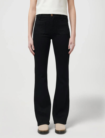 StretchRejs tilbage i tiden med disse denim bukser med mellemhøj talje, designet med en retro-inspireret silhuet. Bomuldsblandingen sikrer komfort hele dagen, mens det udvidede ben tilføjer et strejf af vintage charme. Med påsyede lommer foran er disse jeans et stilfuldt og praktisk valg til enhver garderobe.
