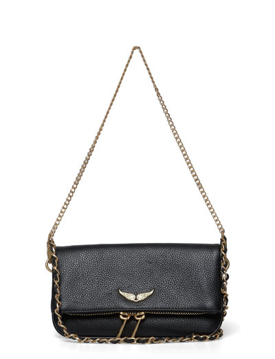 Denne taske er fremstillet af kornet læder og har en kæderem og den karakteristiske vingeformede udsmykning. Kædedetaljerne tilføjer et edgy touch, hvilket gør den til et alsidigt tilbehør til dag eller aften.