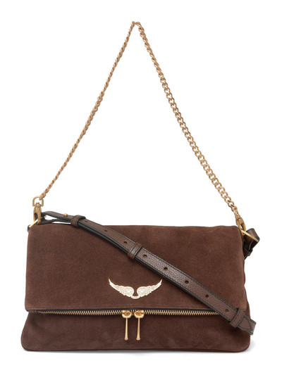 Denne taske er fremstillet af blødt ruskind og har en fold-over-klap og en skinnende kæderem. Designet er afsluttet med karakteristiske vinge-detaljer.