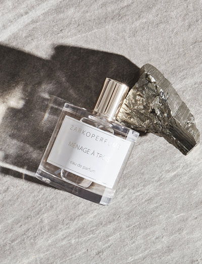 Zarkoperfume Ménage à trois er en kompliceret kærlighedsfortælling – om det forbudte begær. Behovet for at blive elsket og begæret i mere end én forstand, at elske mere end én og bevare friheden til at tage chancer og blive bjergtaget af en drømmeverden. Ménage à Trois er komponeret af 3 musk molekyler, der giver en intim og spændende duft. Duften udvikler sig, når den kommer i forbindelse med huden fra uskyldig til dyb intens duft.