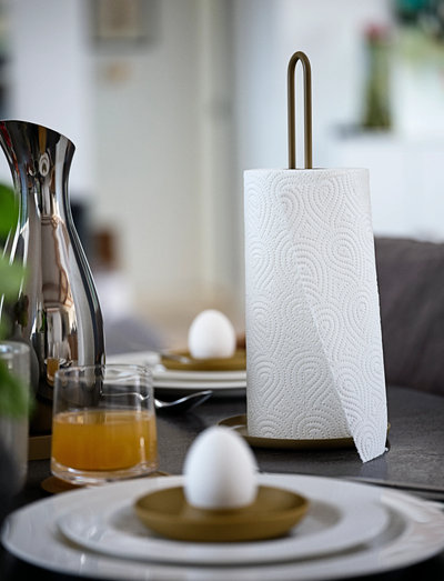 Køkkenrullen er uundværlig – den skal være lige ved hånden og være nem at rykke et stykke papir af. Og så skal den helst ikke stå og vikle sig af rullen ved egen kraft. Derfor har Zones køkkenrulleholder fået lidt ekstra kant. Helt bogstaveligt.