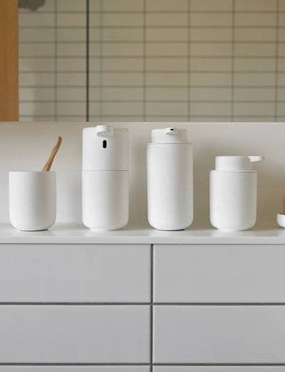 Tandbørstekruset fra badserien Ume fås i de fineste blide farver. Det er i det hele taget et blødt og behageligt bekendtskab, og det er designertrioen VE2, som står bag udformningen af de velproportionerede elementer i serien. Højde 10,3 cm.