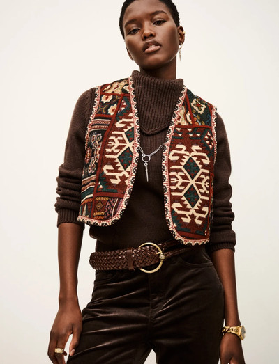 Featuring a unique patchwork design, this vest adds a touch of bohemian flair to any outfit. The intricate detailing and tailored fit make it a standout piece, perfect for layering or wearing on its own.