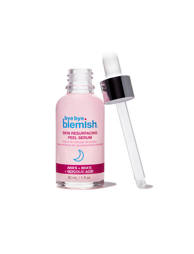 Bye bye blemish resurfacing aha + bha peeling serum is an exfoliating face serum that removes dead skin cells in 10 minutes for smooth, shiny clean skin. formulated with a combination of alpha and beta hydroxy acids to fight excess sebum and clogged pores, minimizing the appearance of impurities. refines the skin's texture and gives radiance.