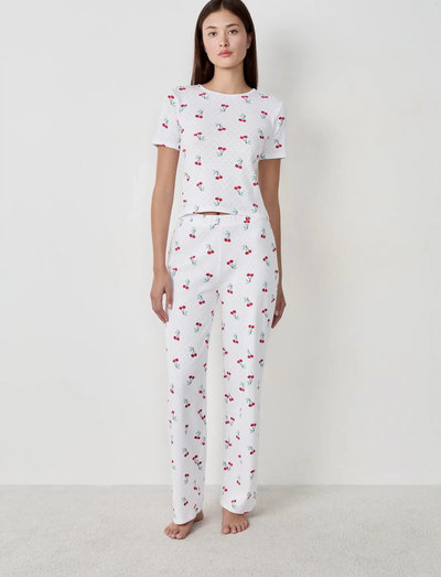 Enjoy a restful night in this comfortable two-piece pyjama set. Crafted from soft cotton, the set includes a short-sleeved top and matching bottoms, perfect for lounging or sleeping.
