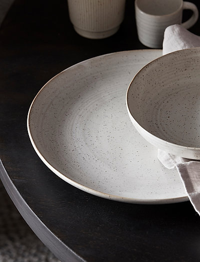 Hvordan du præsenterer din mad, er en væsentlig del af spiseoplevelsen. Pion-middagstallerkenen fra House Doctor er lavet af porcelæn og vil få dine madlavningsevner til at skille sig ud takket være dens hvide / grå glasering. Små stænk og spil i glasuren fuldender udseendet og giver dig en tallerken, der er ideel til både hverdagsmiddage og finere anledninger. Brug den sammen med resten af Pion-stellet og skab en let og uformel, men alligevel stilfuld borddækning. Sæt dit eget personlige præg på borddækningen med dine yndlingsservietter og glas. Brugsspor og ridser kan ikke undgås på grund af den matte glasur og overflade. Dette er blot charmen ved Pion-designet og noget, som giver produktet mere karakter.