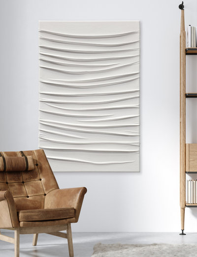 Flow er et håndlavet kunstværk, designet og produceret i danmark. flow giver en følelse af ro med dets unikke former. kunstværket kan hænges på begge led.