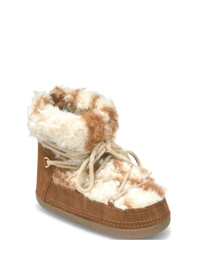 Featuring a plush, textured finish, these boots offer both warmth and a distinctive look. The design incorporates a lace-up closure for a secure fit, complemented by a sturdy sole suitable for various terrains. These are ideal for adding a touch of cozy style to any cold-weather outfit.