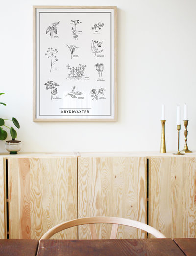 Dejlig vægkunst, der er perfekt til boligindretning, især i køkkenet. Smukt illustreret urtetryk med både svensk og latinsk inskription.