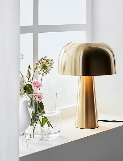 Blanca bordlampe fra Markslöjd. Bordlampe i metal. Fod og skærm i bronze. 2m sort tekstilkabel med afbryder på ledningen. Max 1x25W. E14-sokkel. Lyskilde medfølger ikke.