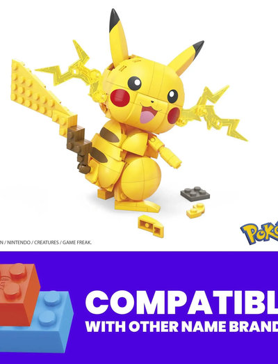 Skab endnu strre kampe med dette Pikachu-byggest. Denne elektriske Pokmon mler over 10 cm i hjden og kan indtage flere heroiske positurer, nr du laver kampklare opstillinger. Denne Pikachu-figur, der ligner karakteren p en prik, har flere elektriske detaljer p kinderne, s din byggeoplevelse bliver chokerende livagtig. Ideel til Wonder Builders, fra 6 r