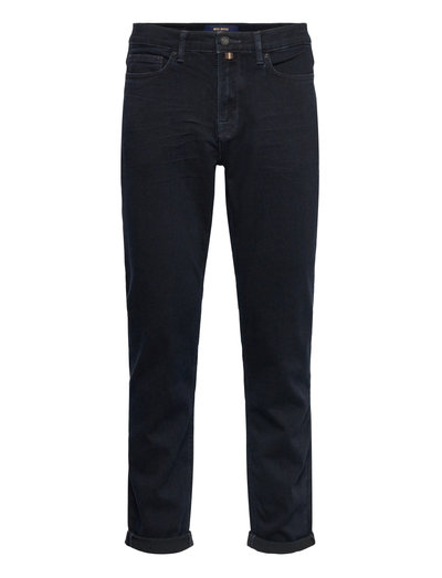 Crafted with a soft dark wash, these jeans offer a comfortable regular fit. The classic 5-pocket construction makes them a versatile addition to any wardrobe, easily paired with a stripe knit and overshirt.