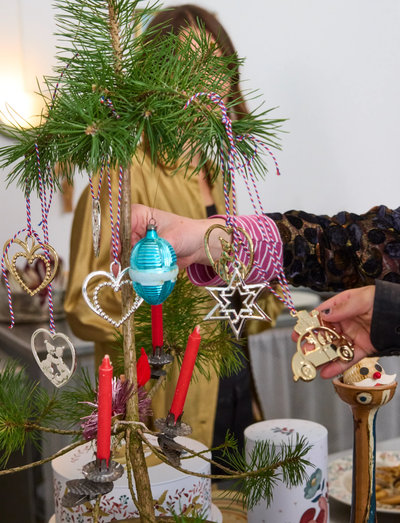 Klassisk julepynt med kunstnerisk kant. Rosendahls Karen Blixens Jul er for mange indbegrebet af den hyggelige og traditionelle jul – fuld af historie og julesymbolik, der får juleglæden til at holde helt indtil juleaften. Ole Kortzau lavede sin første Karen Blixen-julepynt tilbage i 2007. Og hvert år kommer der nye ophæng til i den særlige håndlavede kvalitet skabt med omhyggelighed og øje for detaljen i en sådan grad, at hvert enkelt ophæng fremstår som et lille kunstværk i sig selv, belagt med ægte sølv og guld. 2025-kollektionen indeholder blandt andet denne forsølvede trillende stjerne, der yndigt og svævende tilføjer den magi til december, der gør juletiden til noget helt særligt. Den trillende stjerne er inspireret af den legendariske julehistorie om de vise mænd, der fulgte ledestjernen fra Østerland til Jesus i Betlehem – et ikonisk symbol på julen og højtidens smukke stjernestunder. Ophænget måler 8 cm i højden og fungerer både alene og sammen med de andre små ophæng i serien – perfekt som både vinduespynt og på juletræet. Motiverne i Karen Blixens Jul er ofte en kærlighedserklæring til børnenes perspektiv på julen. Men selvom Ole Kortzaus julehistorier tager udgangspunkt i virkeligheden, så er de ikke virkeligheden. Derfor er der også altid lige puffet lidt til motiverne. De er altid lidt skæve, lidt underfundige. Ole Kortzau vil have os til stoppe op, tage en pause – og nyde de særlige øjeblikke og opdage alle de klassiske karakterer på en anden måde. Dette juleophæng leveres med en fin rød snor.