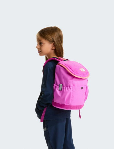 Featuring a plush fleece flap, this backpack is perfectly sized for little explorers. It includes side pockets for water bottles or small essentials, plus a top carry handle for easy grab-and-go.
