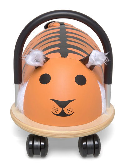 Den lille model, af den originale håndlavede Wheely Bug Tiger, er en fantastisk skubber/gåbil. Det unikke ved Wheely Bug fremfor lignende legetøj er, at hjulene kan dreje rundt i 360 grader, så der altid kan være fuld fart på legen med den lille tiger. Dette udfordrer blandt andet barnets grovmotorik, afstandsbedømmelse og koordination. Wheely Bug'en er ergonomisk rundet, så den er behagelig for barnet at sidde på. Desuden har Wheely Bug et lavt tyngdepunkt, hvilket gør det svært for barnet at vælte med den. Udført i lærketræ med håndtag i rustfrit aluminium, nylonhjul og miljøvenligt Polyuretan. Beregnet til børn fra 1 til ca. 1½ år. Mål: L: 36 x B: 23 cm. Siddehøjden er 20 cm. Anbefalet max vægt: 25 kg.