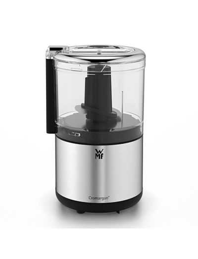 Nu er det slut med at bruge en masse tid på at hakke urter, løg eller nødder! Denne lille lækre køkken-gadget er fremstillet i smukt Cromargan og sikrer altid et perfekt resultat - og ikke nok med det: Du kan nemt betjene hakkeren med kun én hånd. Beholderen har en kapacitet på 0,4 l og er fremstillet i BPA-fri Tritan. Den er forsynet med et to-bladet skær i rustfrit stål og er kendetegnet ved WMFs Perfect Cut-teknologi og en helt speciel sikkerhedslukning. Den kan også med fordel bruges til at skære ost i små lækre stykker. Alle de aftagelige dele kan tåle opvaskemaskine og kan hurtigt vaskes, så de er klar til brug igen med det samme.