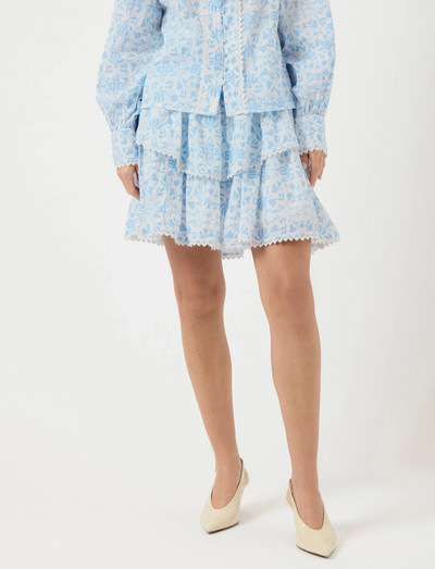 This skirt features a beautiful floral print and a tiered design. It has an elastic waistband for a comfortable fit. The skirt is perfect for a casual day out or a night out with friends.