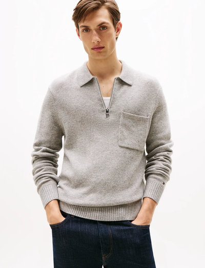Crafted from soft lambswool, this polo sweater features a quarter-zip closure and a chest pocket, offering both comfort and functionality. The refined knitwear piece provides warmth and a touch of sophistication to any outfit.
