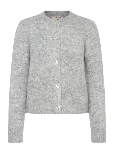 Sellel kootud kardiganil on klassikaline O-kaelus ja mugav, tavaline lõige. Sellel on pikad varrukad ja see kinnitatakse eest hõbedaste nööpidega.