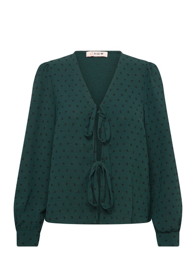 Struktuurse materjaliga pikkade varrukatega pluus pakub stiilset välimust. Sellel on meelitav V-kaelus ja seda saab eest siduda, pakkudes mitmekülgseid stiilivalikuid. Puhvvarrukad lisavad elegantsi.
