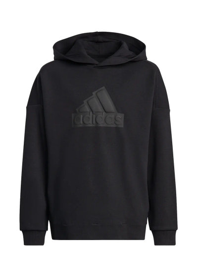 A classic adidas hoodie for your closet. This juniors' pullover sweatshirt is made from a blend of cotton and polyester doubleknit that drapes well with everything from joggers to jeans. The rubber printed adidas Badge of Sport, puts a subtle spin on an iconic logo. • Regular fit • Pullover with hood • 67% cotton, 33% polyester (recycled) • Ribbed cuffs
