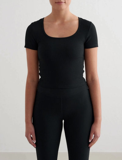 Treening/spordiklubiSellel lühikeste varrukatega crop-topil on soonikkoes tekstuur ja meelitav siluett. Loodud jõudluseks, pakub see mugavat istuvust, mis liigub sinuga kaasa igal tegevusel.
