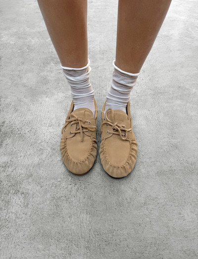 Mokassiinidest inspireeritud konstruktsioon määratleb need paadikingad, pakkudes rafineeritud lähenemist klassikalisele siluetile. Nöörimiskinnis metallist öösid ja traditsiooniline kraenöörimine, lisaks on neil polsterdatud sisetald, mis tagab mugavuse igal sammul. Ajatu valik lõõgastavaks elegantsiks.