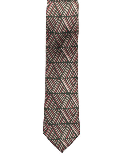 A timeless and elegant tie with a striped geometric pattern. The colour combination of green, yellow, and orange, is ideal to style with navy tops and a white oxford shirt, when you want to give your look a bit more character.