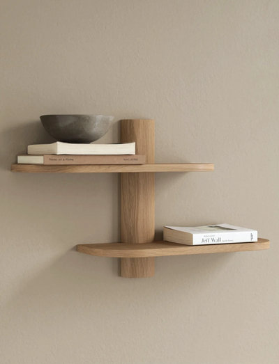 With its generous dimensions, the Bend shelf offers space to tell stories – through photographs, books, ceramics, or greenery – and works just as well on its own as it does as part of a larger shelving installation.