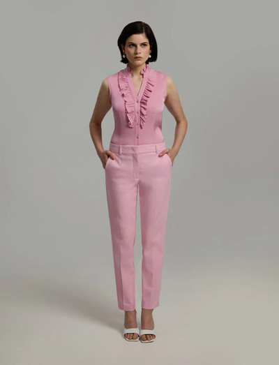 Classic ankle-length slim-fit trousers in Italian cotton. Mid rise waist, belt loops and side pockets, zip, hidden clasp and button fastening at the front.
