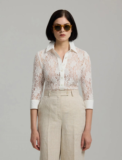 See elegantne pluus on valmistatud õrnast stretškangast. Kolmveerandpikkuses varrukate ja eest nööbitava kinnitusega topp lisab igale rõivakomplektile rafineeritud puudutuse.