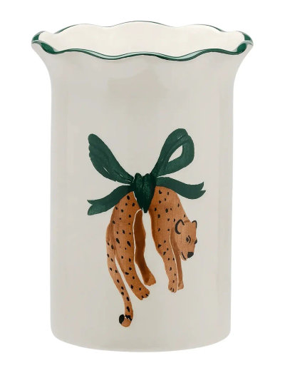 On nõudepesumasinas pestavThe Hanging Leopard Vase is a unique hand-painted item that will present your flowers most beautifully. The leopard design and shaped edges give this item an extraordinary playful look. Place it in your living room with an exotic bouquet or put it on your kitchen counter to hold all your cooking utensils.