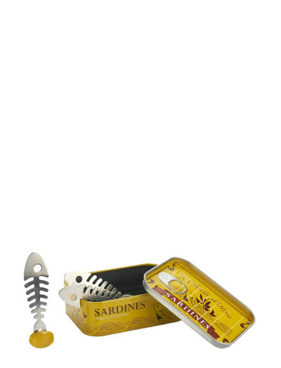 Sardines set of 6 snack forks in the shape of a fishbone and presented in a sardines tin of vintage design. Snack forks are made of stainless steel. ORIGINAL. An original way to decorate your table at the snack hour. Your family and friends will love it. QUALITY. Made of stainless steel for strength and durability. DISHWASHER SAFE. The snack forks are dishwasher safe. CONTENT. Decorated tin and 6 holders in the shape of a fishbone of 2. 2 x 8 cm in stainless steel. Dimensions: 3,5x10,5x7,8 cm Material: tin/stainless