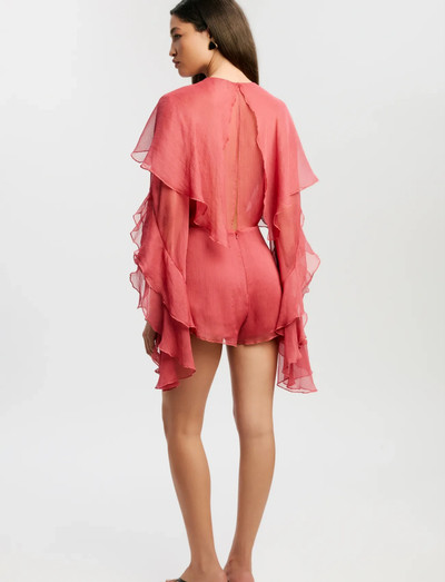 Mänguline playsuit, mida kaunistavad kaskaadsed volangid. Õhukesed varrukad ja kerge materjal muudavad selle ideaalseks soojemate ilmade jaoks.