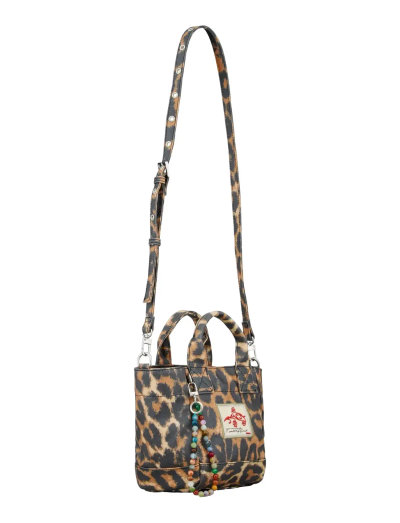Kaetud viimistlus tõstab selle kompaktse koti esile, muutes selle stiilseks ja praktiliseks valikuks. Sellel on nii lühikesed käepidemed kui ka pikem, reguleeritav rihm mitmekülgsete kandmisvõimaluste jaoks. Helmesdekoratsioon lisab mängulise puudutuse.