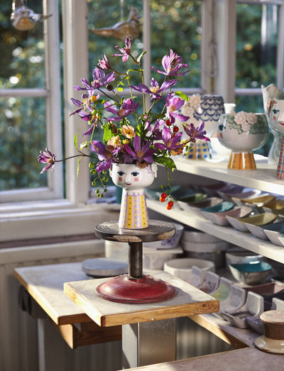 Bjørn Wiinblad esindab kõike, mis on hullumeelne, veider, loominguline ja imeline. Ja Bjørn Wiinbladi kauni ja naeratava Eva vaasi, mille juuksed ja kleit on lavendlivärvi ning kollase ja rohelise tooni, abil saate luua kogu oma kodus omapärase ja värvilise meeleolu. Vaas on 15 cm kõrge ja 10 cm läbimõõduga ning valmistatud läikivast glasuuritud portselanist. Mandlikujulise silmade ja terava ninaga nägu on Wiinbladi originaallinja, samas kui värviline kleidimuster on Bjørn Wiinbladi arhiivist pärit illustratsioonide uus tõlgendus. Kuju on inspireeritud Wiinbladi originaalsetest ja ikoonilistest Eva vaasidest, millel olid laiad pead ja koonusekujuline keha. Bjørn Wiinblad oli rõõmsameelne, suure ja värvika isiksusega kunstnik, kes tegi asju omal moel ega kartnud unistada ja mõelda suurelt. Tema vaim tuleb esile unikaalses Eva's, mis julgustab meid värviliste lillekimpude, eksootiliste taimede, küünalde ja loominguliste kaunistustega väljendama oma stiili ja isiksust sisekujunduses. Üks on kindel: Elu ei ole kunagi igav, kui Eva kolib sisse.