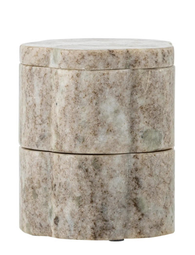 The Nezli Jar by Bloomingville is made of natural colored marble and consists of two stackable jars with lids. Use them for jewelry, small items or as stylish storage in the kitchen. Each jar has a natural variation in color and texture.