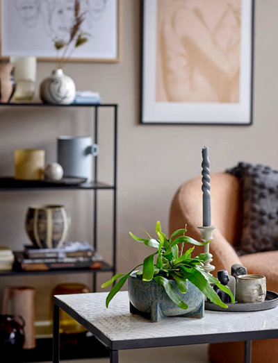 The Niah Coffee Table by Bloomingville is a minimalist and elegant coffee table. The table is made of metal with a top made of stone and white ceramic. The coffee table presents a nice off white design on the tabletop tiles, which contrasts perfect with the lightness of the structure.