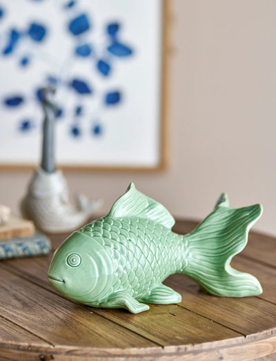 The Sukey Deco by Creative Collection is made of stoneware and shaped like a fish with a glazed surface in shades of green. The natural variations of the glaze give a vibrant expression and each figure will have its own special touch.